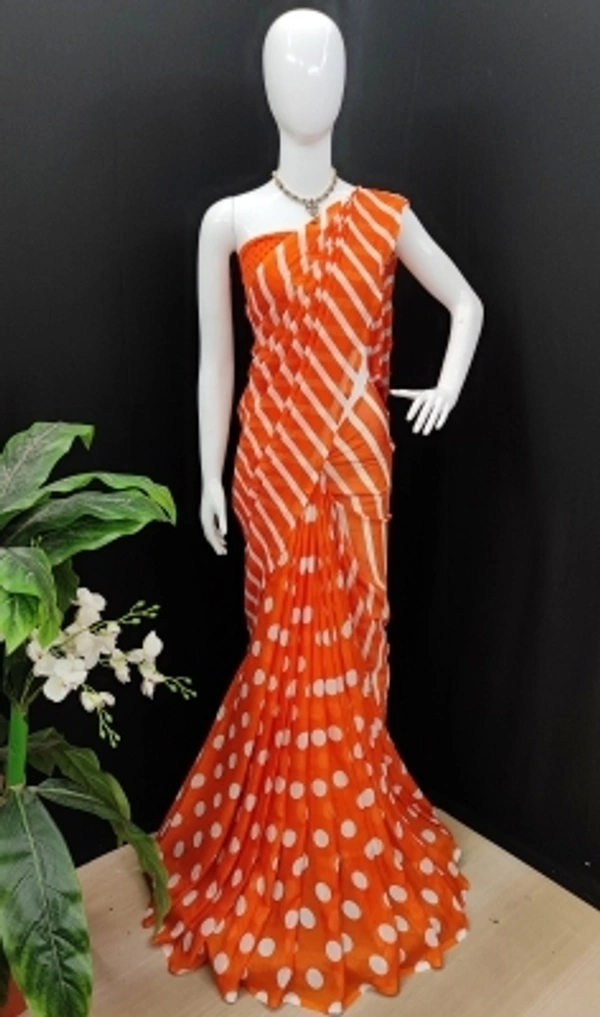 Polka Print Daily Wear Georgette SareeColor: Black, Blue, Green, Orange, Red, YellowStyle Code :SP_MQ_1670_1Pattern :Polka PrintPack of :1Secondary Color :OrangeOccasion :Party & FestiveConstruction Type :MachineFabric Care :Hand Wash7 Days Return Policy, No questions asked.