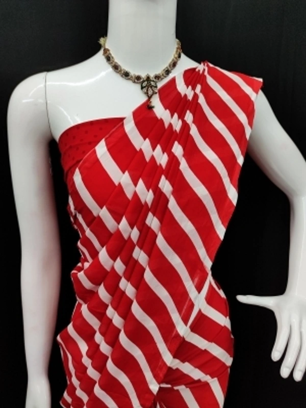 Polka Print Daily Wear Georgette SareeColor: Black, Blue, Green, Orange, Red, YellowStyle Code :SP_MQ_1670_1Pattern :Polka PrintPack of :1Secondary Color :RedOccasion :Party & FestiveConstruction Type :MachineFabric Care :Hand Wash