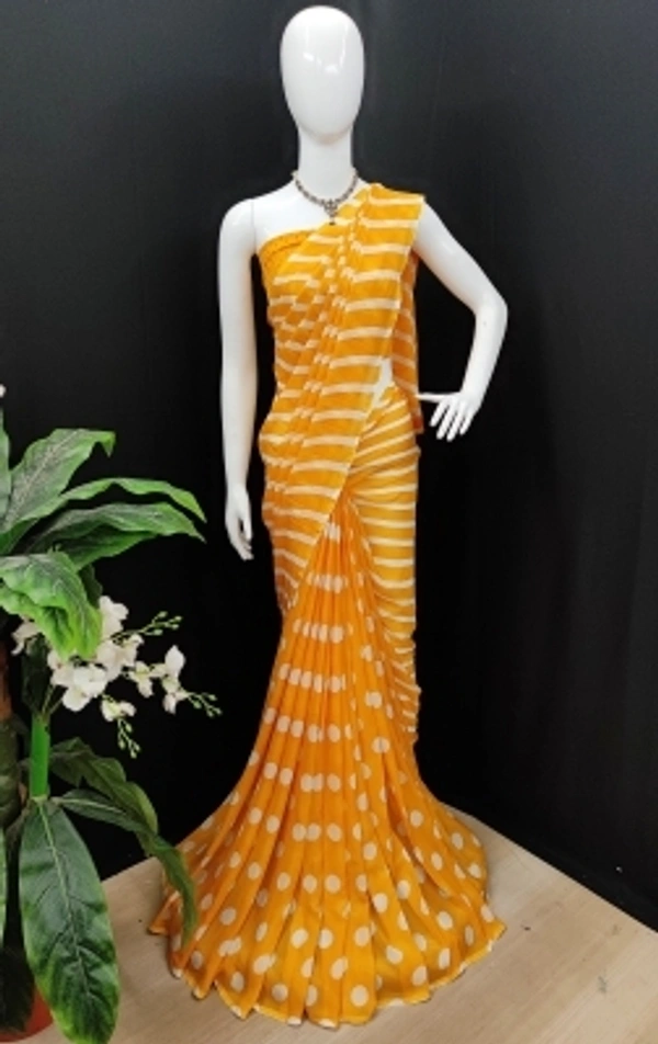 Polka Print Daily Wear Georgette SareeColor: Black, Blue, Green, Orange, Red, YellowStyle Code :SP_MQ_1670_1Pattern :Polka PrintPack of :1Secondary Color :YellowOccasion :Party & FestiveConstruction Type :MachineFabric Care :Hand Wash