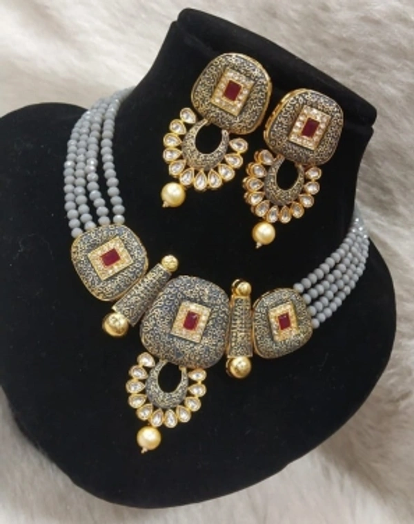 Alloy Jewel SetColor: Blue, Green, Grey, Maroon, YellowColor :Grey, GoldColor Code :GreyModel Number :ZC_Set120_sSales Package Id :2 earrings, 1 NecklaceType :Earring & Necklace SetBase Material :AlloyPlating :NA7 Days Return Policy, No questions asked.