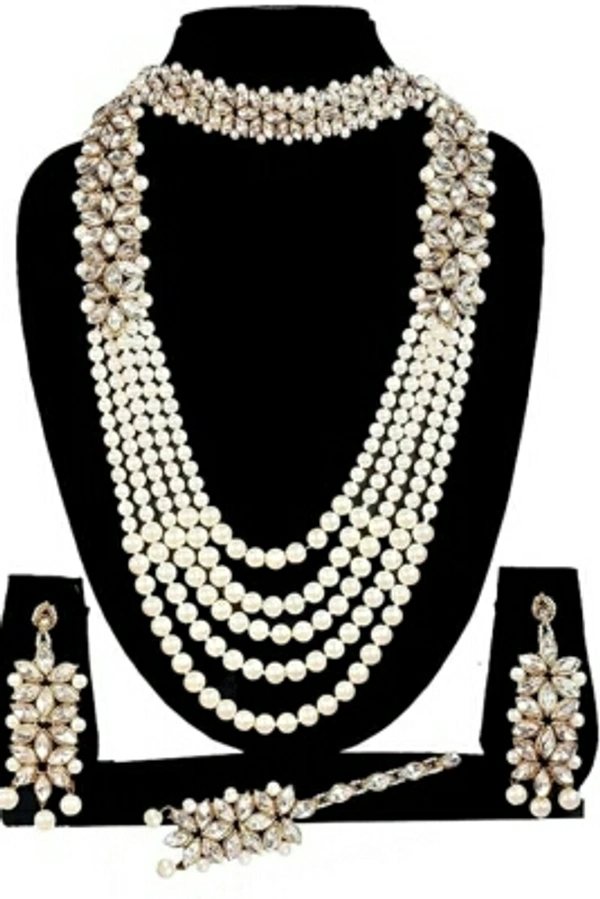 Alloy Jewel SetColor :Gold, WhiteColor Code :GoldModel Number :102054782052Sales Package Id :Haar, Mangtika, earrings, ChokerType :Bridal SetBase Material :AlloyPlating :Gold-plated3 Days Return Policy, No questions asked.