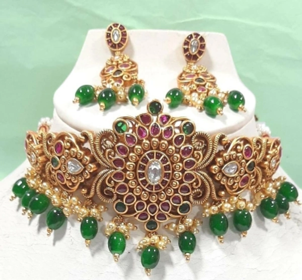 Alloy Jewel SetColor :MulticolorColor Code :GREEN DROPModel Number :FS SET GREENSales Package Id :1 Choker Necklace Set, 1 Pair of EarringsType :Earring & Necklace SetBase Material :AlloyPlating :Gold-plated7 Days Return Policy, No questions asked.