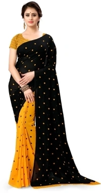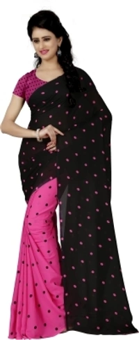 Anand SAREES Polka Print Daily Wear Georgette Saree Color: Black, Green,Black, Pink,Black, Purple,Black, Yellow Style: Half & Half Sari Saree Fabric: Georgette Blouse Fabric: Georgette Blouse Piece Type: Unstitched Type: Daily Wear Blouse Piece Length: 0.75 m 7 Days Return Policy, No questions asked.