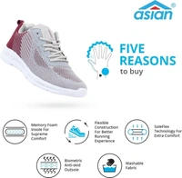 asian Delta-14 sports shoes for men | Latest Stylish Casual sport shoes for men | running shoes for boys | Lace up Lightweight grey shoes for running, walking, gym, trekking, hiking & party Running Shoes For MenColour: Grey, Maroon1.2 inch Heel HeightOuter Material: FabricInner Material: Soft breathable fabric lining which prevents sweatingClosure: Lace-UpsPattern: Mesh10 Days Retu