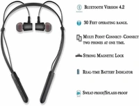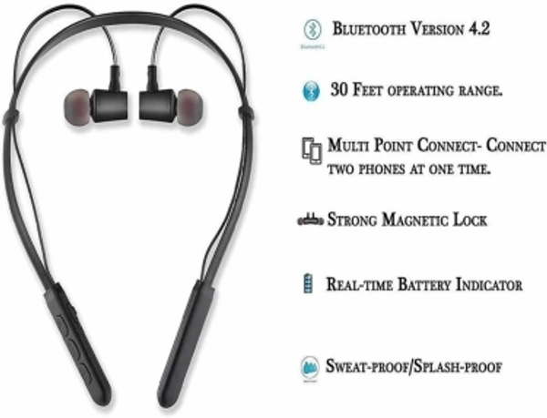 B11 bluetooth neckband Bluetooth HeadsetModel Name :B11 bluetooth neckbandColor :BlackHeadphone Type :In the EarInline Remote :YesSales Package :1Connectivity :BluetoothSweat Proof :Yes7 Days Replacement Policy, No questions asked.