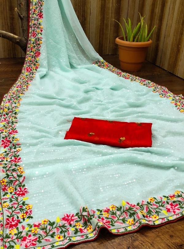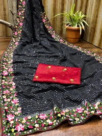⭐ *BOLLYWOOD STAR COLLECTION* ⭐⭐⭐Dress like film starts and fashion models ⭐⭐*FABRIC DETAILS* ⭐CLOTH OF BEST QUALITY Georgette fabricEmbroidery detailsHeavy Embroidery multy sequence (5MM) Work done on sareeBLOUSE OF Satin Banglori SILk with embroidery work LOOK GLAMOUROUS, STAY BEAUTIFUL* ⭐