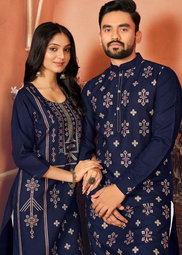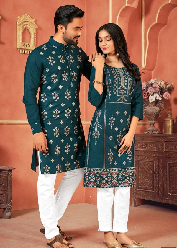 Cute Couple Matching Kurta Kurti Set With Pazama