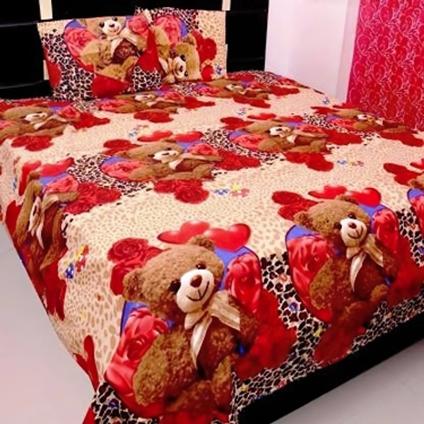 kajims 144 TC Cotton King Cartoon Flat BedsheetColor: Brown, Red Heart And Red Roses, TaadySize: KingFlat (L x W): 228 cm x 223 cmMaterial: CottonIncludes: Number of Bedsheets: 1, Number of Pillow Covers: 2Thread Count: 144Color: Red Heart And Red Roses, Brown, Taady7 Days Return Policy, No questions asked.
