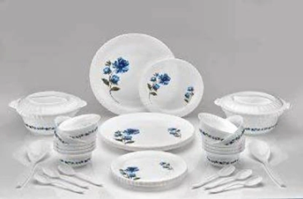 KTART Pack of 36 Plastic DINNER SET(36 PCS) Dinner SetMade of: PlasticSales Package: 6 Full Plates, 6 small plates, 12 Veg Bowls, 2 Serving Spoons, 6 Spoons, 3 Serving Bowls with Air tight LidsPack of: 36Microwave SafeDiameter: 10 inch7 Days Return Policy, No questions asked.