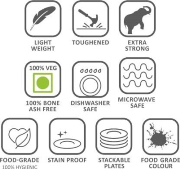 Sales Package: 6 Full Plates, 6 small plates, 12 Veg Bowls, 2 Serving Spoons, 6 Spoons, 3 Serving Bowls with Air tight Lids