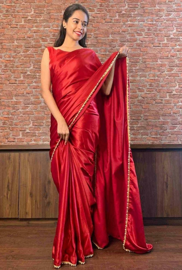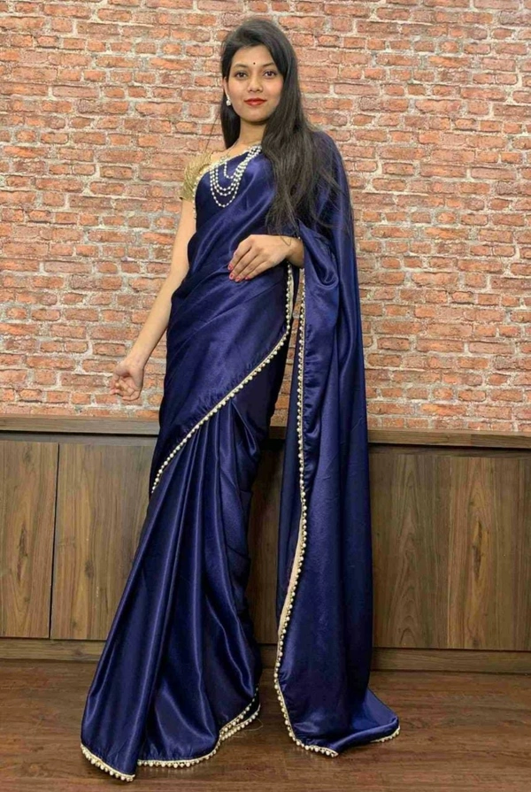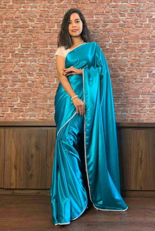 ??Saree Fabric : Duchess Sattin with *Moti Work Lace Patta.*