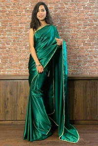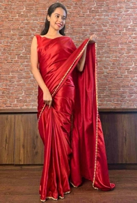 *Satin with moti lace border wrap in 1 minute saree. Looks like a usually well draped beautiful saree.*