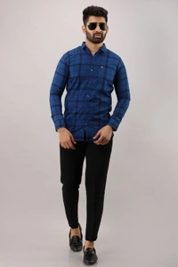 Surhi Men Checkered Casual Blue ShirtFabric: Pure CottonSlim Fit, Full SleevePattern: CheckeredSet of 1. , 10 Days Return Policy, No questions asked.