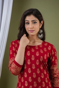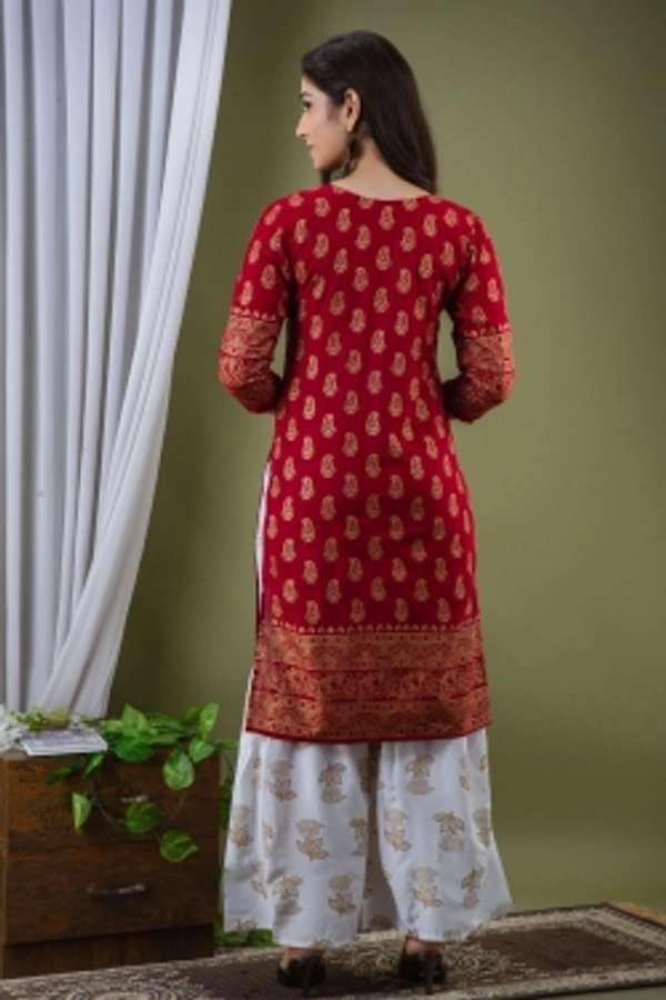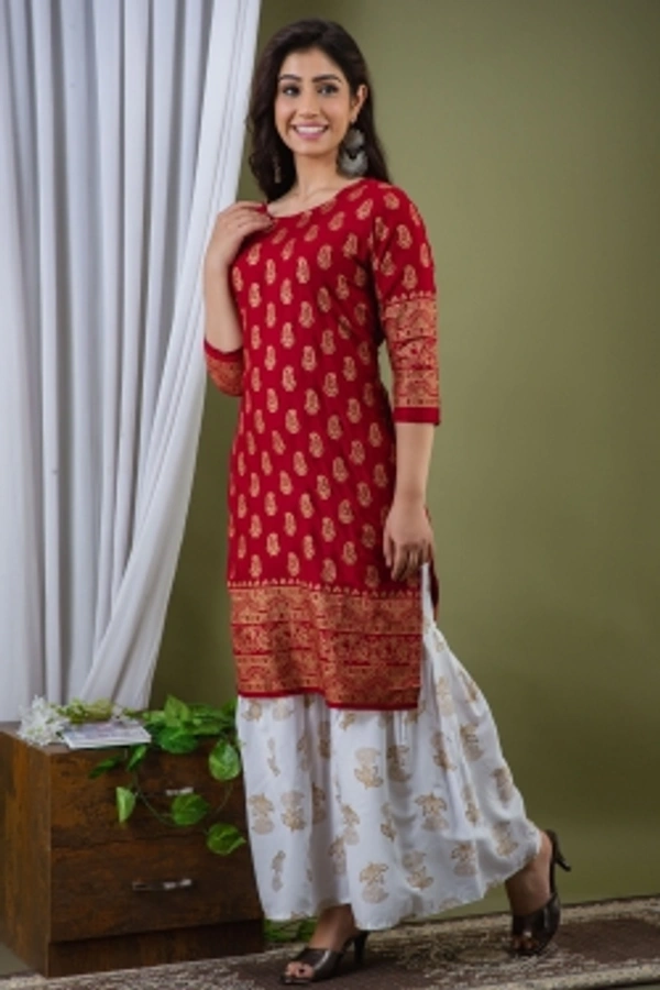 Surhi Women Kurta and Sharara SetViscose Rayon Fabric3/4 SleevePaisley PatternColor: Red